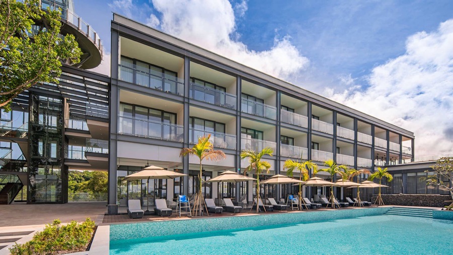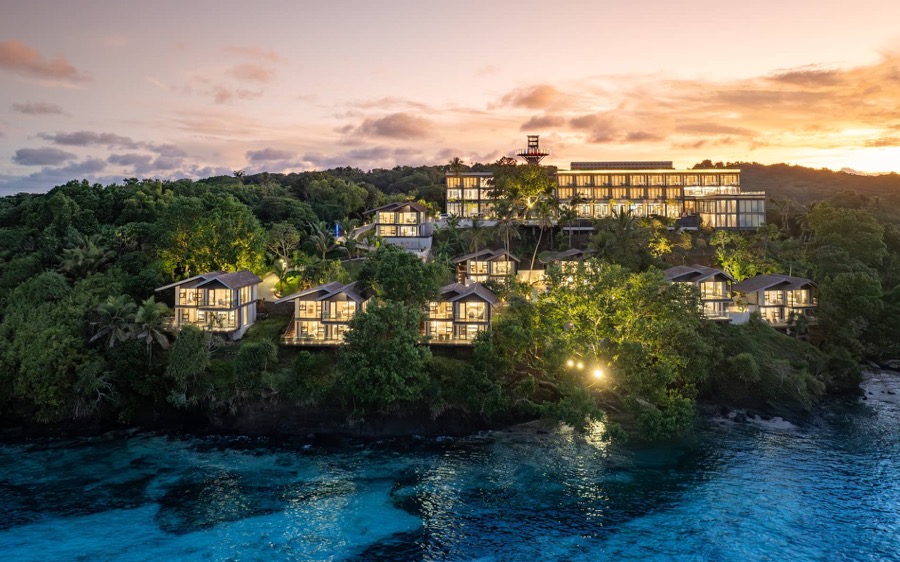 空港のある島、バベルダオブ島の海に面した高台に建つ隠れ家的ホテルです。