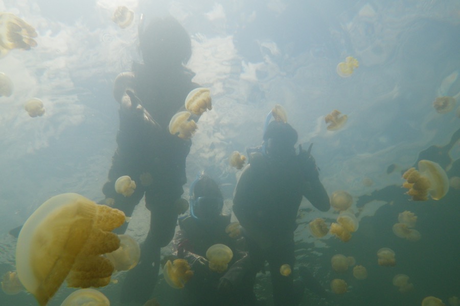 クラゲに囲まれての浮遊は宇宙遊泳のような何ともいえない感覚です。
